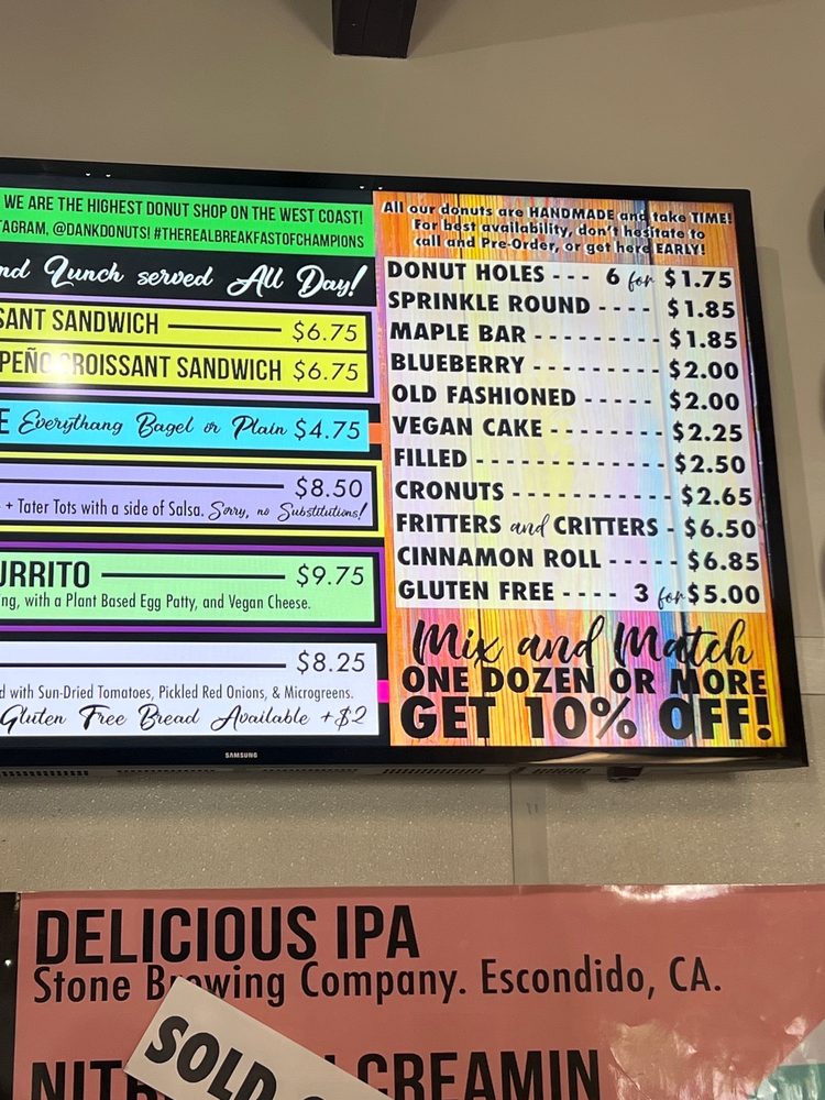 Introducing Dank Donuts, a laid back donut shop located in Big Bear Lake, CA. With a skater attitude and a variety of freshly made donuts, Dank Donuts offers a unique dining experience. Customers rave about the oversized fritters, delicious croissant sandwiches, and the popular Dank Nugs. The outdoor seating area is dog-friendly, making it a perfect spot to enjoy a meal with your furry friends. The efficient service and friendly staff ensure a pleasant dining experience. With a wide range of options for donuts, coffee, and breakfast items, Dank Donuts is a must-visit destination in Big Bear. Stop by for a tasty treat and experience the flavors that keep customers coming back for more at Dank Donuts.